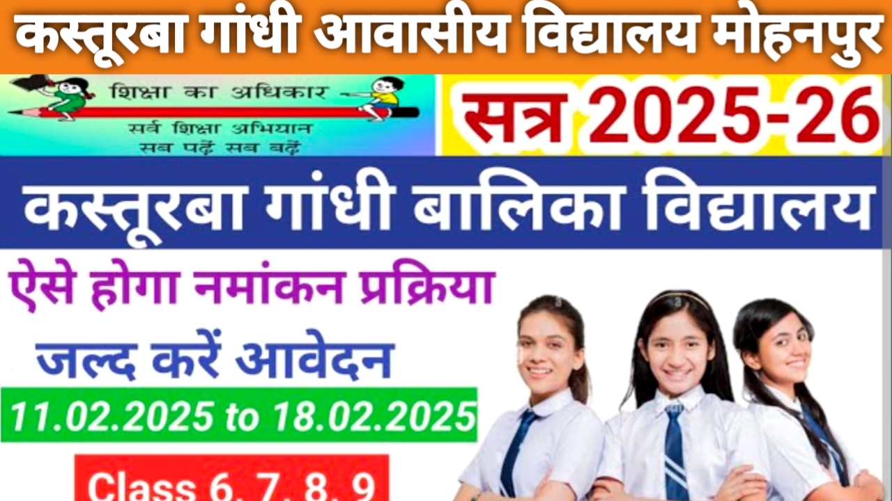 देवघर// शैक्षणिक सत्र 2026-27 के लिए कस्तूरबा गांधी आवासीय विद्यालय मोहनपुर में कक्षा 6 के लिए नामांकन प्रक्रिया शुरू हो गई है। कक्षा 6 में नामांकन के लिए आवेदन जमा करने की अंतिम तिथि 31 जनवरी तक निर्धारित की गई है।