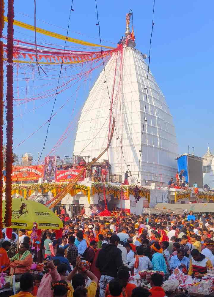 देवघर // विश्व प्रसिद्ध द्वादश ज्योतिर्लिंग बाबा बैद्यनाथ धाम मंदिर में महाशिवरात्रि के मौके पर लाखों लाख श्रद्धालु की भीड़ उमड़ पड़ी। सुबह चार बजे बाबा बैद्यनाथ और माता पार्वती मंदिर का पट खुलने के बाद से श्रद्धालु लगातार बाबा पर जलाभिषेक कर रहे हैं। कतारबद्ध होकर श्रद्धालु बाबा बैद्यनाथ की जयकारा लगाते हुए आगे बढ़ रहे हैं और बाबा पर जलाभिषेक कर रहे हैं। देवघर जिला प्रशासन और मंदिर प्रशाशन की और से सुरक्षा का पुख्ता इंतजाम किया गया है। मंदिर परिसर से लेकर पूरे रूट लाइन में पुलिस बल और मजिस्ट्रेट की नियुक्ति की गई है। महाशिवरात्रि को लेकर तीर्थ पुरोहित ने बताया कि आज के दिन बाबा की चारपहर की विशेष पूजा होती है और रात्रि में बाबा की शादी होती है। आज के दिन जो भी भक्त बाबा से जो मनोकामना करते हैं वह पूरी होती है।