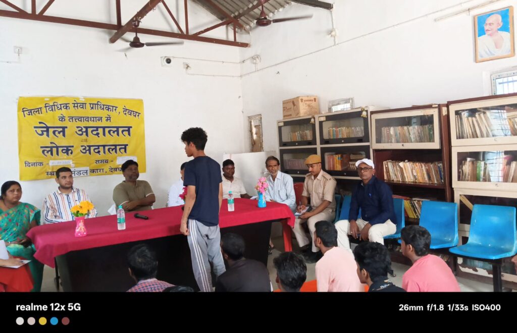 देवघर // झारखंड राज्य विधिक सेवा प्राधिकार के तत्वाधान में जिला विधिक सेवा प्राधिकार की और से मंडल कारा देवघर में जेल अदालत का आयोजन किया गया। जिसमे जेल के बंदियों को उनके अधिकार के बारे में बताया गया और साथ ही Free Legal Aid के बारे में भी बताया गया । इस मौके पर जिला विधिक सेवा परधिकार के सचिव संदीप निशित बारा और LADC चीफ सज्जन कुमार मिश्र एवं उनके टीम आदि मौजूद थे।