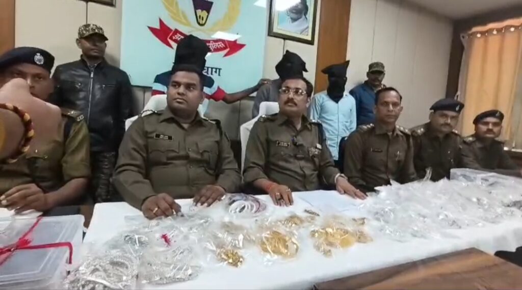 हजारीबाग// जिले के बरही में रविवार रात हुए साहसिक ज्वेलरी लूटकांड का पुलिस ने महज 24 घंटे में पर्दाफाश कर दिया है। पुलिस ने तीन कुख्यात अपराधियों को गिरफ्तार कर लिया है, जबकि लूट के दौरान उपयोग किए गए स्कॉर्पियो वाहन, KTM बाइक, देशी कट्टा—3, देशी कारबाइन—1, जिंदा गोली—6 और करीब डेढ़ करोड़ के सोना–चांदी के आभूषण बरामद कर लिए गए हैं।