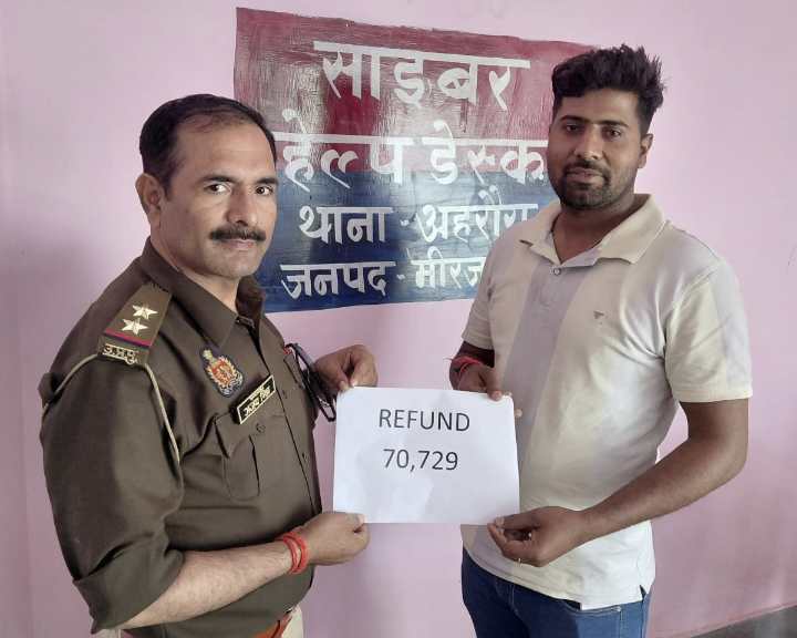 मीरजापुर // गलती से अनजान खाते में भेजी गई रकम को वापस दिलाकर अहरौरा थाना की साइबर टीम ने सराहनीय पहल की है। पीड़ित के खाते से ट्रांसफर हुए एक लाख चार हजार रुपये में से 70 हजार 729 रुपये वापस कराए हैं।सोनपुर निवासी अनिल कुमार पांडेय ने 24 जनवरी को थाना अहरौरा की साइबर सेल में शिकायत दर्ज कराई थी कि उनसे ऑनलाइन लेनदेन के दौरान गलती से बड़ी रकम अज्ञात व्यक्ति के खाते में चली गई। शिकायत एनसीआरपी पोर्टल पर दर्ज कर जांच शुरू की गई। साइबर टीम ने त्वरित कार्रवाई करते हुए संबंधित बैंकिंग चैनलों से समन्वय कर 70,729 रुपये पीड़ित के खाते में वापस कराए। रकम वापस मिलने पर सोमवार को अनिल कुमार पांडेय ने थाने पहुंचकर पुलिस टीम का आभार जताया। इस दौरान उन्हें साइबर जागरूकता के तहत ऑनलाइन ठगी से बचाव के उपाय भी बताए गए। कार्रवाई में थानाध्यक्ष अजय मिश्र, हेड कांस्टेबल नरेंद्र सिंह, कांस्टेबल पवन गुप्ता व महिला कांस्टेबल महिमा उपाध्याय की अहम भूमिका रही। पुलिस ने लोगों से अपील की है कि किसी भी साइबर ठगी की सूचना तत्काल 1930 हेल्पलाइन या नजदीकी थाने में दें।