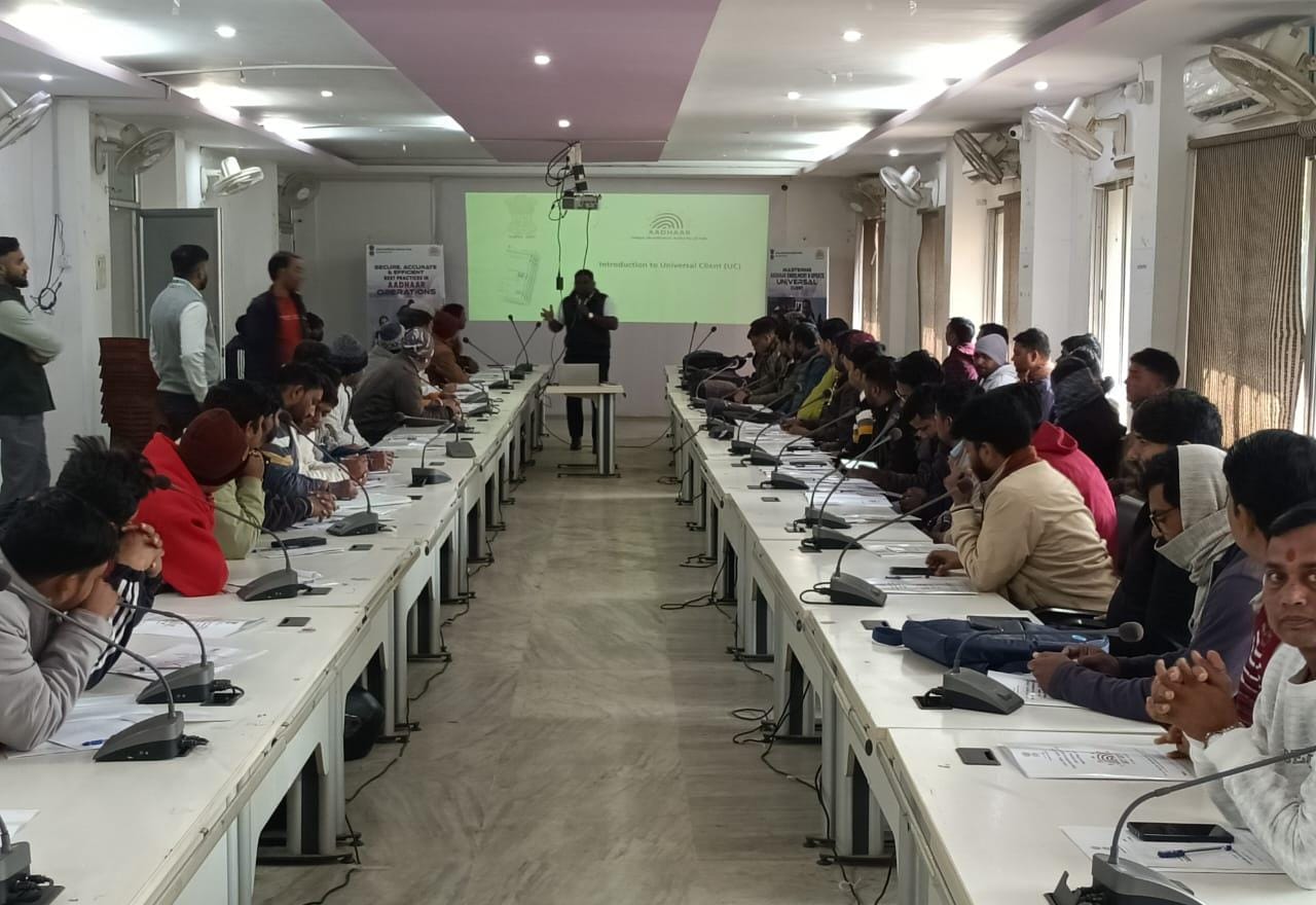 देवघर // विकास भवन सभागार में UIDAI (भारतीय विशिष्ट पहचान प्राधिकरण) से संबंधित एक दिवसीय प्रशिक्षण कार्यक्रम का आयोजन किया गया। साथ ही प्रशिक्षण कार्यक्रम के दौरान जिले के विभिन्न आधार नामांकन एवं अद्यतन केंद्रों पर कार्यरत आधार ऑपरेटरों को आधार के नए सॉफ्टवेयर “यूनिवर्सल क्लाइंट (Universal Client)” के संबंध में विस्तृत प्रशिक्षण प्रदान किया गया। इसके अलावा प्रशिक्षण में नए सॉफ्टवेयर की विशेषताओं, लॉगिन प्रक्रिया, आधार नामांकन एवं अद्यतन की नई कार्यप्रणाली, तकनीकी सावधानियों तथा त्रुटि निवारण से संबंधित महत्वपूर्ण जानकारियां दी गईं। साथ ही इस अवसर पर बताया गया कि यूनिवर्सल क्लाइंट सॉफ्टवेयर के माध्यम से आधार सेवाओं को और अधिक सुरक्षित, सरल एवं प्रभावी बनाया गया है, जिससे आम नागरिकों को बेहतर और त्वरित सेवा उपलब्ध हो सकेगी। आगे उपायुक्त ने निर्देशानुसार सभी आधार ऑपरेटर को नए सॉफ्टवेयर का सुचारू रूप से उपयोग सुनिश्चित करने से अवगत कराया गया, ताकि आधार सेवाओं की गुणवत्ता में निरंतर सुधार हो सके।प्रशिक्षण कार्यक्रम में संबंधित विभाग के पदाधिकारी, तकनीकी विशेषज्ञ एवं आधार ऑपरेटर उपस्थित थे।